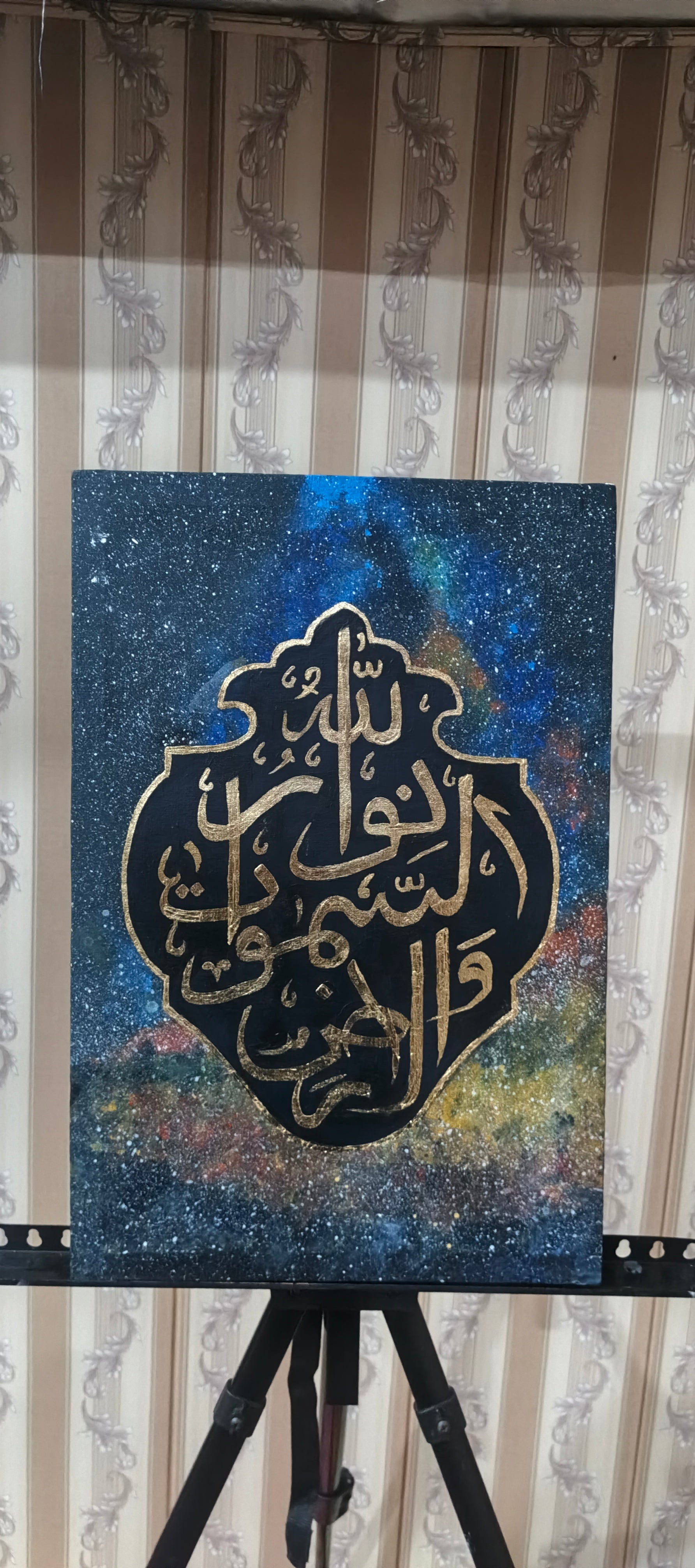 Celestial Light" – Hand-Painted (Allāhu nūru s-samāwāti wa-l-ard) Calligraphy Canvas