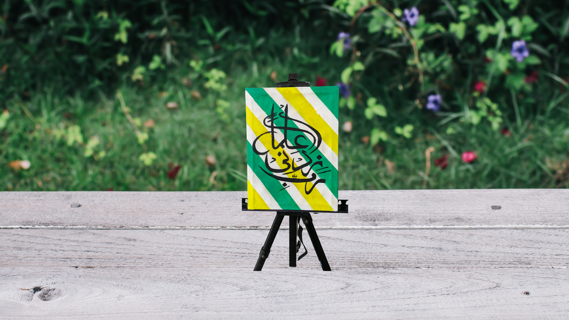 You may also like a canvas featuring the phrase Bismillah (In the Name of God) in a similar striped style.